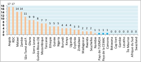 Graphique 2: Nombre d’années d’inflation supérieure à 20% dans quelques pays d’ASS