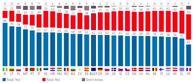 Dans cette même enquête, il ressort que près de 90% des Européens considèrent que l’Europe sociale est importante pour eux personnellement. La rédaction de la question importe, car la notion même d’Europe sociale a un contenu technocratique que ne maîtrisent pas forcément tous les Européens. L’interrogation était ainsi rédigée : « Dans quelle mesure une Europe sociale est-elle importante ou non pour vous personnellement (c’est-à-dire une Europe qui se préoccupe de l’égalité des chances, de l’accès au marché du travail, des conditions de travail équitables, de la protection et de l’insertion sociale ? ».