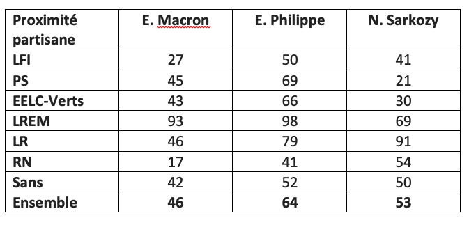 % réponses : excellente opinion ou bonne opinion selon la proximité partisane.