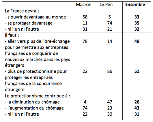 Les différences entre les deux électorats du second tour de l’élection présidentielle de 2017 permettent de mesurer la réalité de ce nouveau clivage (Tableau 2). Ce sont bien, à cette occasion, les partisans de la société ouverte et ceux de la société fermée qui se sont affrontés.