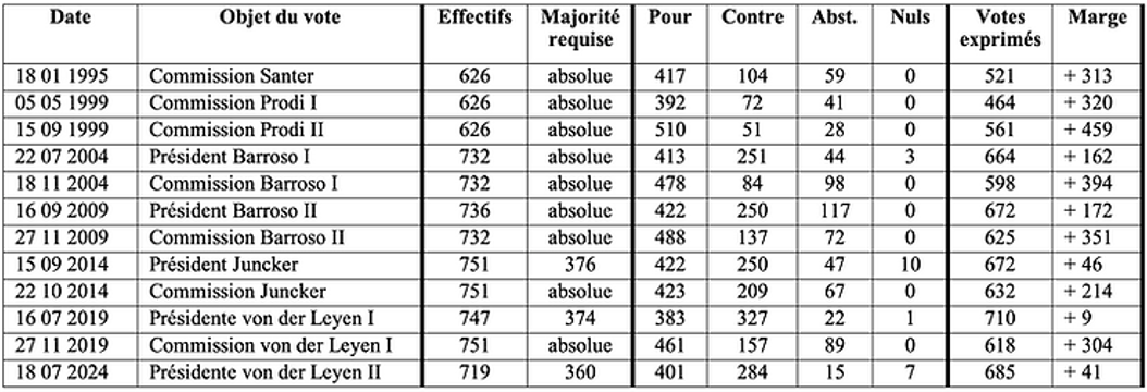 2. Cette candidate est « élue » par le PE à la majorité de ses membres ; Mme von der Leyen l’a été le 17 juillet 2024.