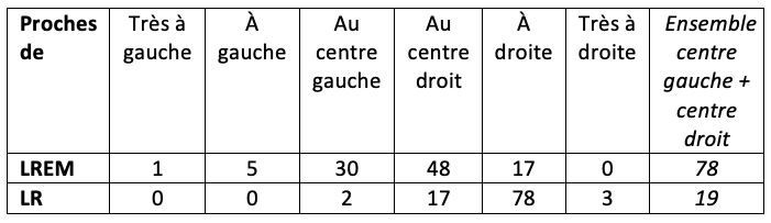 Tableau 1. Auto-positionnement des proches de LREM et de LR (%)