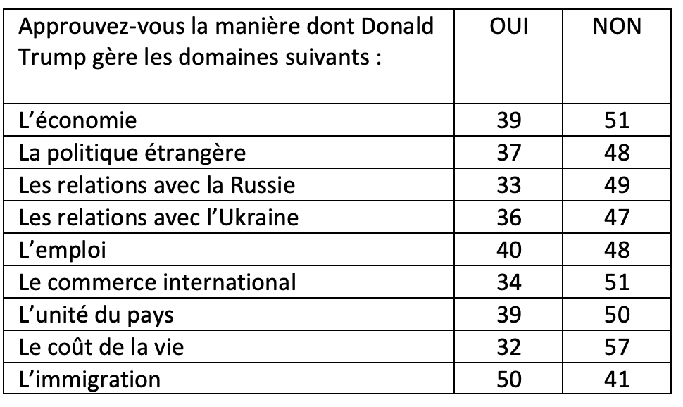 Tableau 2. Jugements portés sur les politiques de Donald Trump (%)