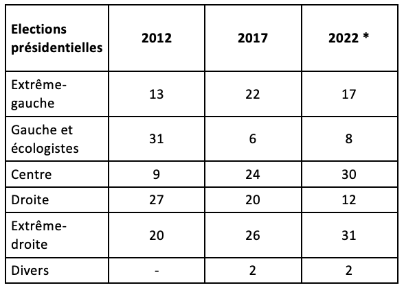 Tableau - La transformation du système des forces politiques aux élections présidentielles, 2012-2022