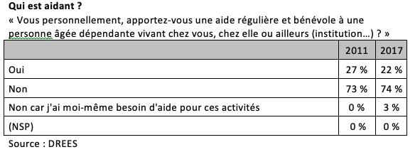 D’abord, c’est un peu plus d’une personne sur cinq qui est concernée. On trouve en effet cette proportion de gens déclarant apporter personnellement une aide régulière et bénévole à une personne âgée dépendante, que cette dernière vive chez elle, au domicile de l’aidant ou en établissement.