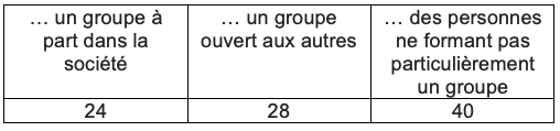 Réponses pour la catégorie « les juifs » à la question : « Pour chacune des catégories suivantes dites-moi si elle constitue actuellement pour vous… »