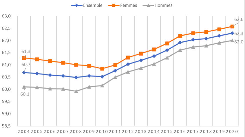 Figure 1. Âge conjoncturel moyen de départ à la retraite par sexe