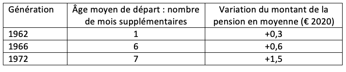 Tableau 1. Les effets de la réforme sur l’âge au départ et le montant des pensions par génération