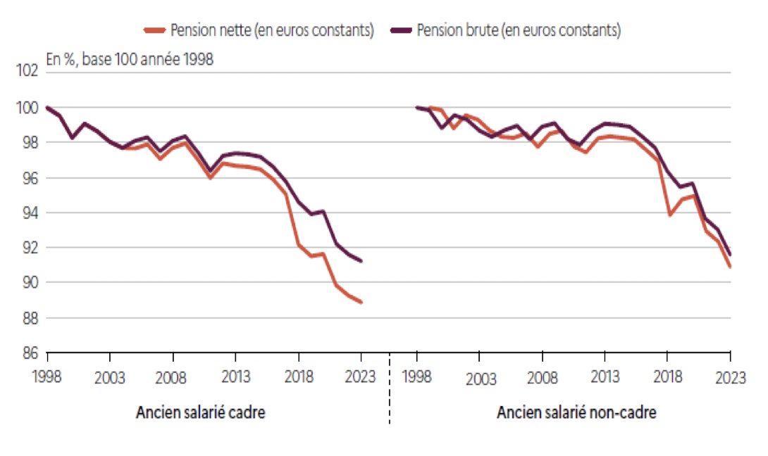 Figure 2. Évolution du pouvoir d’achat de la pension tous régimes des assurés ayant liquidé en 1998