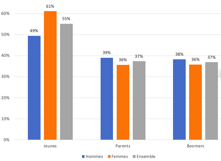 Figure 3. Le grand écart idéologique selon le genre dans les jeunes générations