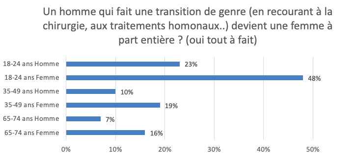 Ainsi, paradoxalement, alors que les jeunes adhèrent de plus en plus à une conception du genre selon laquelle les différences entre les sexes devraient s’abolir (puisqu’elles sont « artificielles »), dans leurs orientations sur la question, ces différences de perception se creusent au contraire.