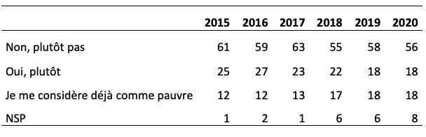 « Vous personnellement, pensez-vous qu'il y a un risque que vous deveniez pauvre dans les cinq prochaines années ? » (en%)
